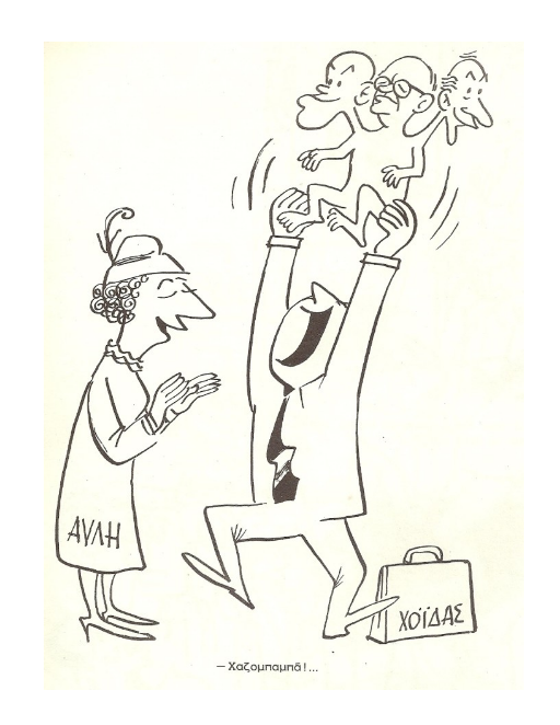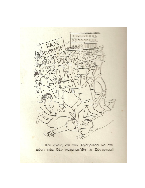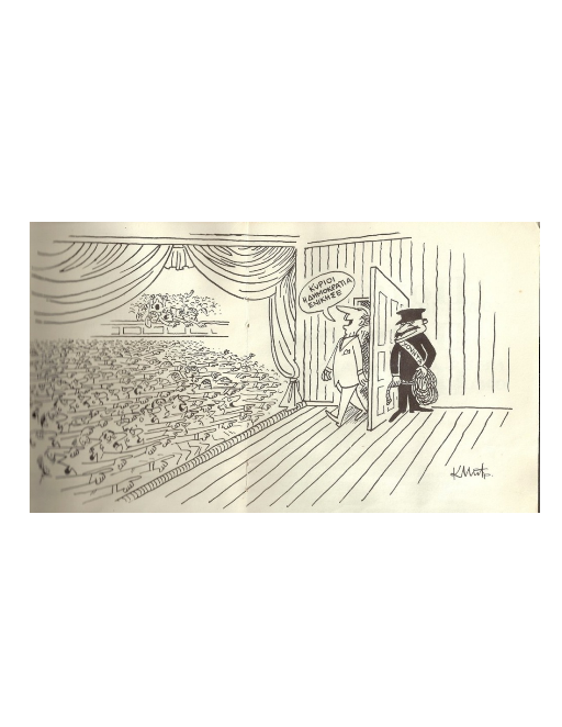 Κύριοι, η δημοκρατία ενίκησε! Κλασικό, δίκαια διάσημο σκίτσο του Μητρόπουλου, που φτιάχτηκε, θαρρώ, τον Ιούνιο του 1965 -και ήταν προφητικό!