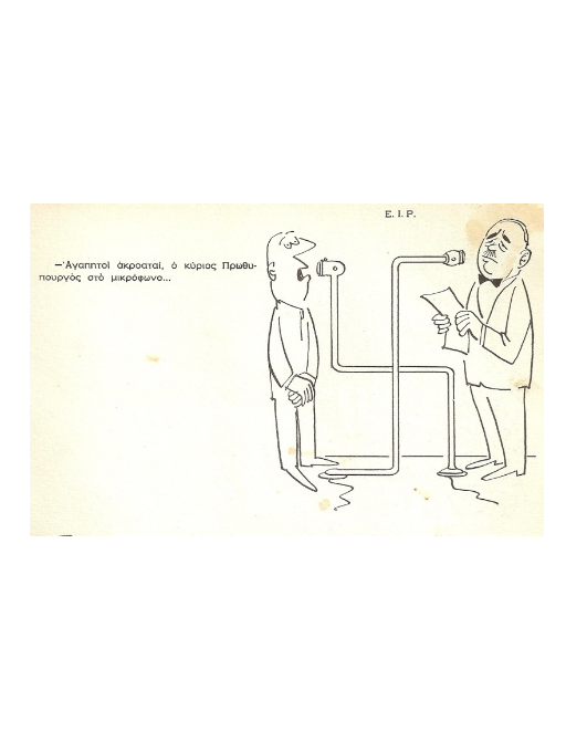 Ο κύριος πρωθυπουργός στο μικρόφωνο και τα μικρόφωνα στο ΕΙΡ (Εθνικό Ίδρυμα Ραδιοφωνίας) σχηματίζουν τη σβάστικα.