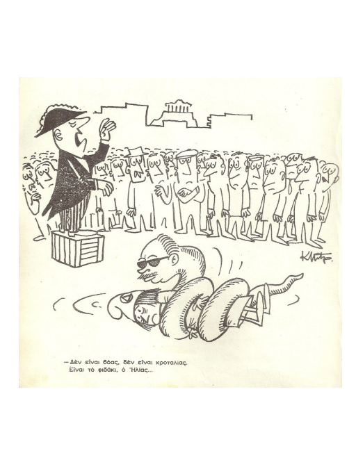 Δεν είναι βόας δεν είναι κροταλίας…. Αγνοώ αν υπάρχει υπαινιγμός στη λέξη ‘φιδάκι’. Ίσως υπονοείται το κόμμα των αποστατών, Φιλελεύθερο Δημοκρατικό Κέντρο, (ΦΙΔΗΚ), το οποίο ο λαός αποκαλούσε “φίδι κολοβό”, αλλά αυτό, θαρρώ, ιδρύθηκε αργότερα.