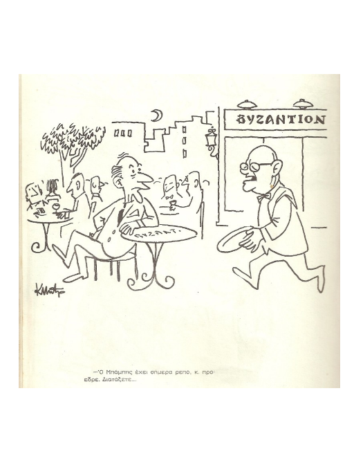 Ο Μπάμπης έχει σήμερα ρεπό O Κανελλόπουλος έπινε τον καφέ του στο Βυζάντιον, στην πλατεία Κολωνακίου