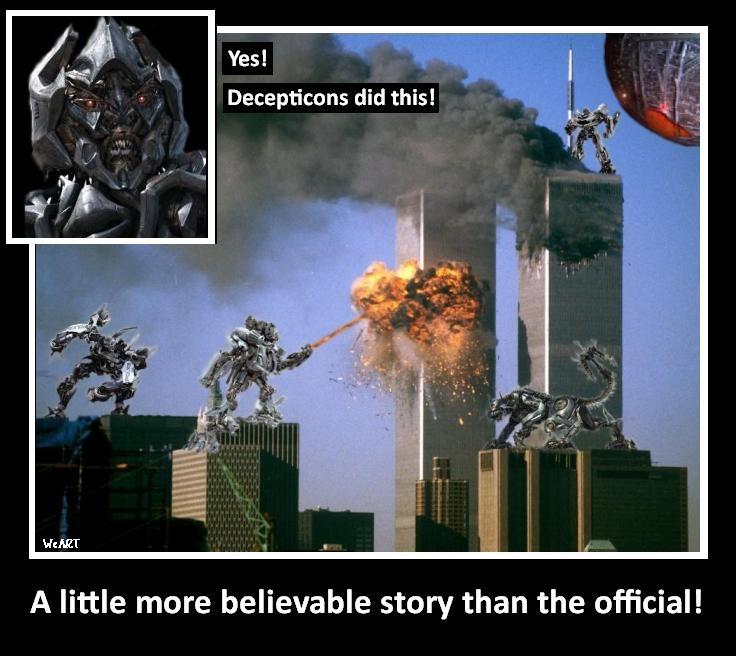 Αν λοιπόν πιστέψατε τα όσα ειπωθήκαν για το πως και από ποιους χτυπήθηκαν οι πύργοι της Νέας Υόρκης, σας προτείνω να το επανεξετάσετε και να σκεφθείτε την παρακάτω εκδοχή που ειναι εξίσου πιστευτή με αυτή που είπαν (και λένε):Εδω όμως υπάρχει κάτι ακόμα πιο σοβαρό, το οποίο δεν είμαστε σε καμία περίπτωση οι ειδικοί, προκειμένου να το αναλύσουμε, αξίζει όμως να αναφερθούμε.