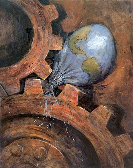 Αντί να κοιτάξουμε κατάματα τον ρυπογόνο πολιτισμό μας, αποπροσανατολιζόμαστε μέσα στην ίδια μας την αυτο-επιτήρηση, επιδιδόμαστε σε έναν ενοχικό βολονταρισμό και καταλήγουμε αναρχο-φρικιά με πιστωτικές κάρτες, vegans με πολυεστερικά ρούχα, οικολόγοι με αυτοκίνητο, εναλλακτικοί με facebook. Διότι, όλα κι όλα, η οικολογία να λέγεται με τ’ όνομά της, αλλά τα σουπερμάρκετ θα είναι πάντοτε μια πιο οικονομική επιλογή στο βασίλειο του εμπορεύματος, κι ας κοστίζουν οι σακούλες, στην τελική ίσως και να μην πειράζει. Έτσι, ο οικολογικός μας προσανατολισμός μετατρέπεται σε ένα είδος κωμικού αυτο-εμπαιγμού. Έχουμε πλήρη συνείδηση ότι όλες μας οι αντιδράσεις μπρος στην οφθαλμοφανή πρόσκρουση με τον πλανήτη είναι σπασμωδικές και δεν έχουν κανένα απολύτως εγγενές νόημα, τις πράττουμε μόνο και μόνο για να επιδεικνύουμε πως συμβαίνουν, μια παρανοϊκής φύσης ταυτολογία του συλλογικού μας πράττειν απέναντι στη φυσική μας καταστροφή, ίσα ίσα για να νομίζουμε ότι κάνουμε κάτι, ότι κάπως αναβάλλουμε την κατρακύλα της μοίρας μας. Διότι, σε τελική ανάλυση, η οικολογία μακράν του να λειτουργεί ως κώδωνας του κινδύνου απέναντι σε μια αυτοκαταστροφική οργάνωση της παραγωγής, πλέον περνάει στη φάση της ιδανικής ευκαιρίας για την επανεκκίνηση του μπλοκαρισμένου καπιταλισμού. Ένα ολόκληρο σύμπλεγμα υπεραναπτυγμένων οικονομικών δραστηριοτήτων κάνει την εμφάνισή του: από τη μεταπώληση ανακυκλώσιμου υλικού μεταξύ των κολοσσών διαχείρισης απορριμμάτων, το «πρασίνισμα» των νέων τεχνολογιών, το real estate μετά από τις καταστροφές που προκαλεί η «Φύση» (βλ. Μάνδρα), τη βιομηχανία προϊόντων που θα ικανοποιούν την ηθική μας ανάγκη να είμαστε eco friendly, το ανθρωπιστικό έργο υπέρ των πληγέντων και των περιβαλλοντικών προσφύγων, τις πράσινες χρηματοδοτήσεις για να γίνουν κι άλλες έρευνες που θα επιβεβαιώσουν για ακόμη μια φορά ότι υπάρχει οικολογικό πρόβλημα, τις μεγαλο-εταιρείες που ειδικεύονται σε συμβουλευτική υπηρεσιών φιλικών προς το περιβάλλον και περιβαλλοντικών πιστοποιήσεων προς τους πολυεθνικούς τους συνεταίρους. Όταν η οικολογική καταστροφή παρουσιάζεται σαν μετεωρολογικό ατύχημα και όχι σαν έγκλημα του καπιταλιστικού κόσμου, τότε εύλογο είναι τα όρνια να πάνε πάνω από τον ασθμαίνοντα, ημιθανή μας πλανήτη και να «τσιμπολογήσουν» ό,τι δεν έχει προλάβει να σαπίσει ακόμα.